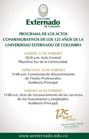 El día de hoy, 15 de Febrero del 2011, mi alma máter, la Universidad Externado de Colombia, cumple 125 años.