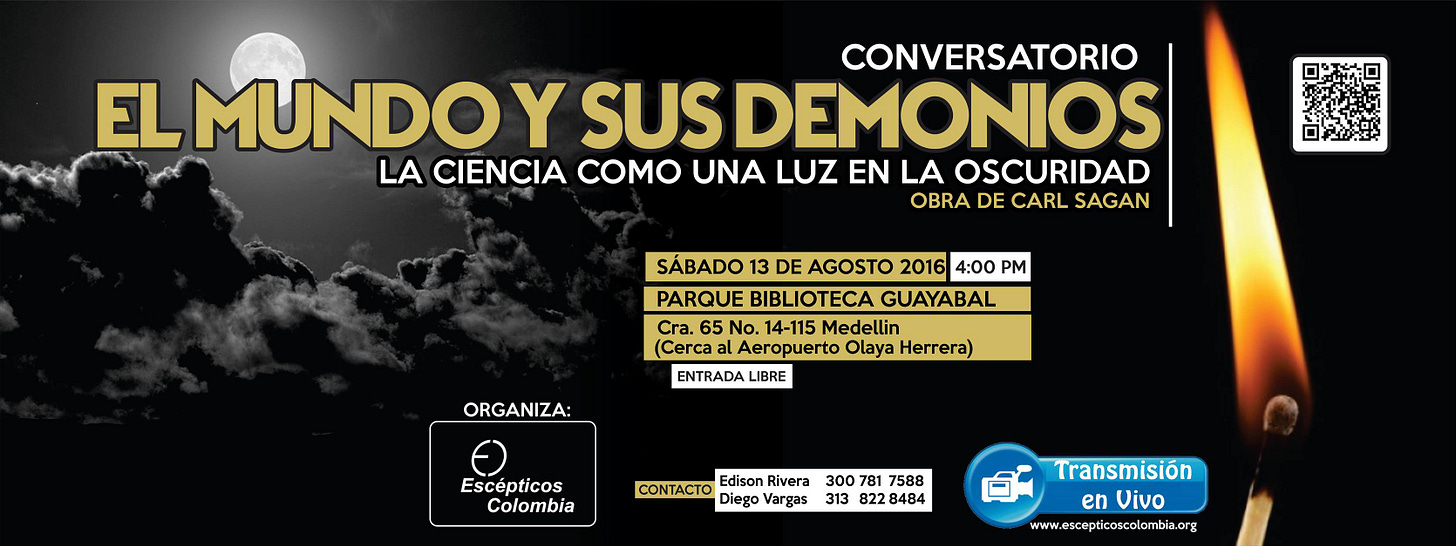Luego, el sábado, siguiendo en Medellín, Escépticos Colombia invita al conversatorio El mundo y sus demonios: