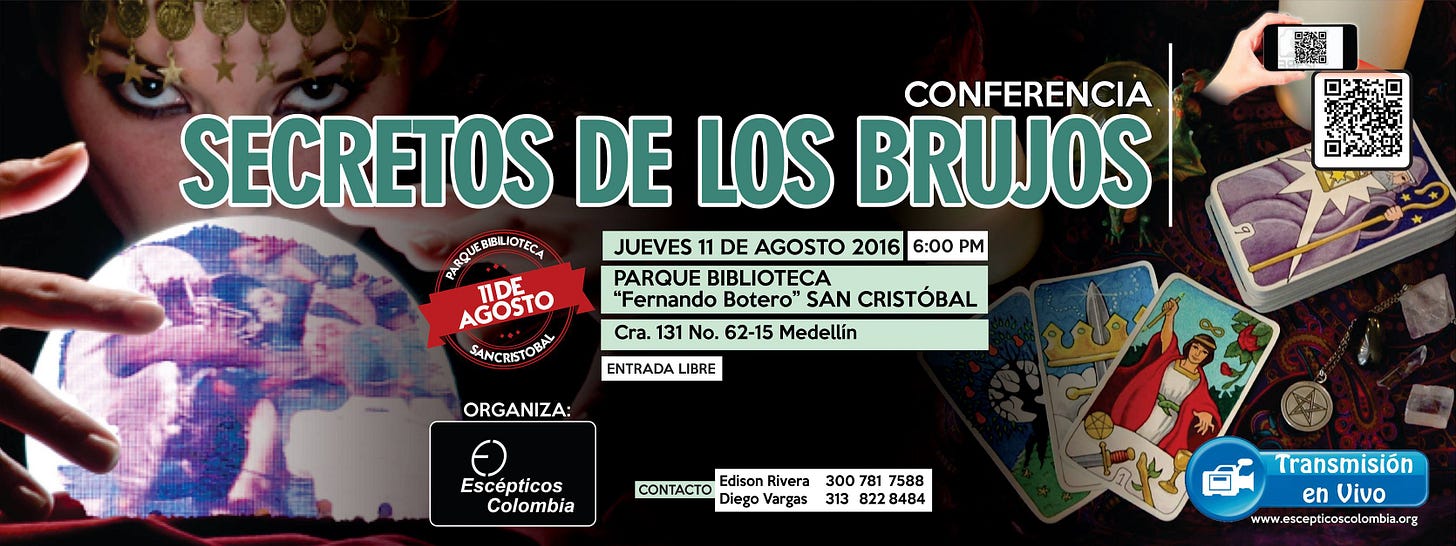 Empezamos en Medellín, mañana, con la conferencia Secretos de los brujos, organizada por Escépticos Colombia: