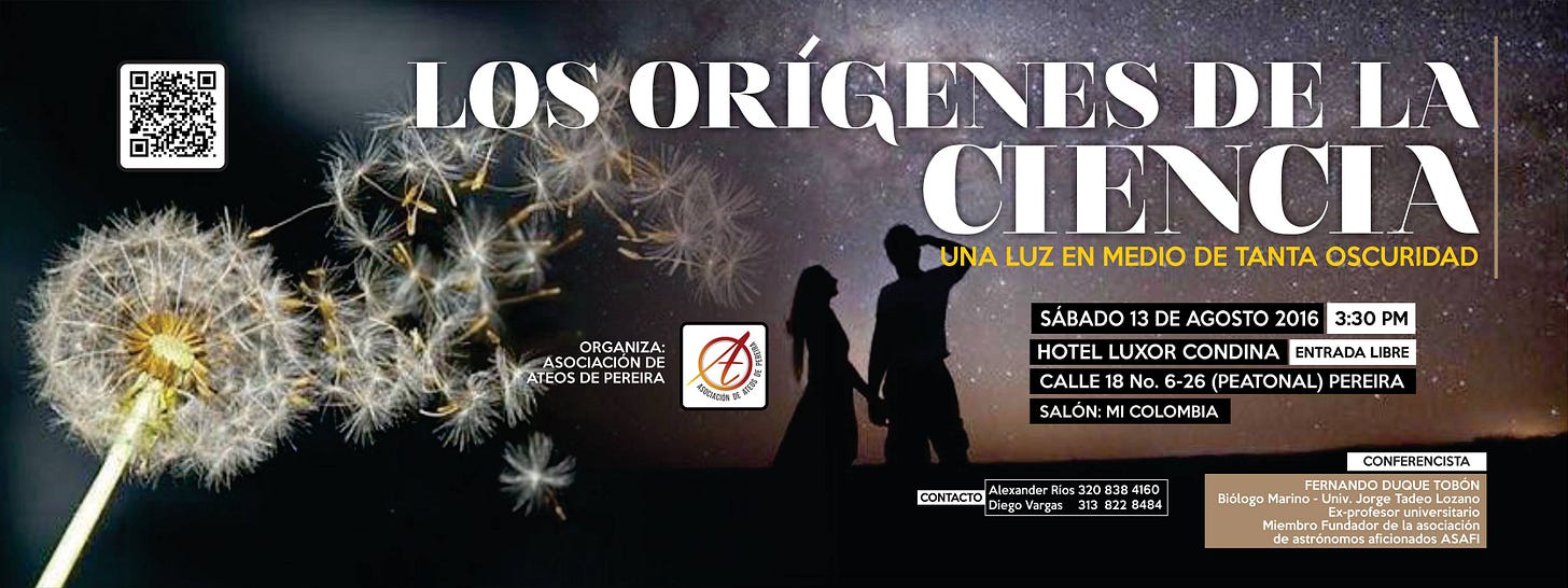 Ese mismo día, en Pereira la Asociación de Ateos de Pereira (AAP) ofrecerá una conferencia sobre los Orígenes de la ciencia.