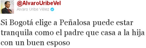 Pues bien, este energúmeno protofascista hace gala de su machismo de gamonal cuando comenta las elecciones de alcalde a Bogotá: