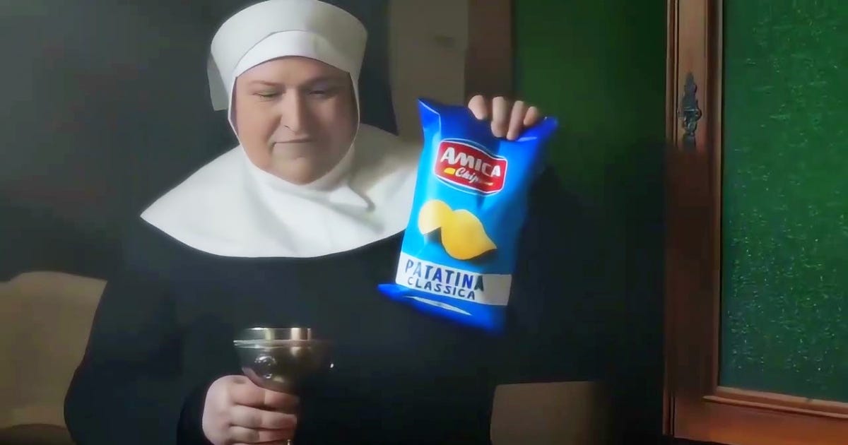 Esta semana, la marca italiana de papas fritas Amica Chips se encontró en el ojo del huracán tras un anuncio publicitario para televisión de medio minuto, en el cual la Madre Superiora en un convento católico no encuentra las hostias para la comunión, así que en vez pone papas de Amica Chips; la primera monja en recibir la comunión con papas abre los ojos mientras que el eco del crujir de la fritura resuena por todo el recinto.