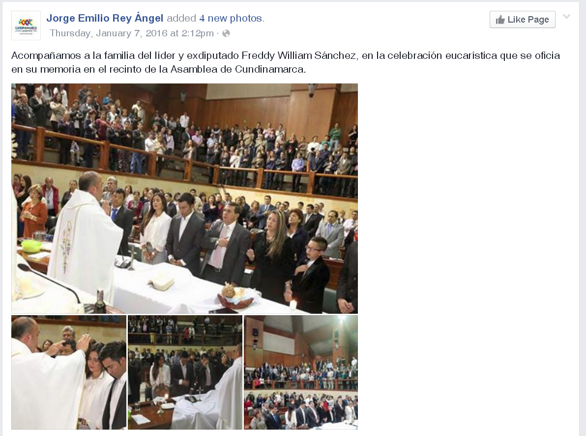 A finales de 2015 murió el político conservador Freddy William Sánchez Mayork, quien en una ocasión fue diputado en la Asamblea — sus familiares y amigos tienen todo el derecho de hacer una ceremonia de despedida como consideren adecuado, y si son católicos están en todo su derecho de hacer una misa.