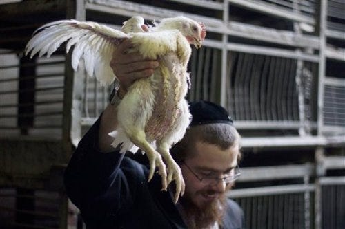 La tradición se remonta al menos 800 años y pide a los creyentes a que agiten un pollo vivo tres veces por sobre sus cabezas antes de la llegada del Yom Kippur, el día más sagrado del judaísmo, que empieza al anochecer del viernes. Después de la masacre, los judíos religiosos suelen donar la carne a la caridad.