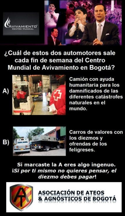 ¿Cuál de estos dos carros sale de Avivamiento cada fin de semana?David Osorioene 18, 2013Compartir(B)(vía Asociación de Ateos y Agnósticos de Bogotá)AnteriorSiguiente