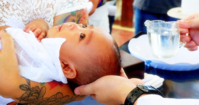Como todos saben, los católicos necesitan ser protegidos de un dios supuestamente amoroso mediante un hechizo mágico llamado bautizo que es lanzado por un clérigo, para que dicho dios —que se supone que lo sabe todo— sepa que ellos tienen la única fe verdadera y así no los condene al fuego eterno del Infierno junto con todos los que tienen la fe equivocada.