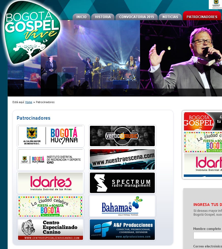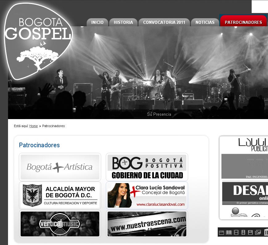 Hoy, la página de patrocinadores de Bogotá Gospel se ve así:
