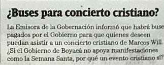 Si Colombia es un Estado laico, ¿por qué la Gobernación puso recursos para el transporte hacia el concierto? ¿De dónde salieron esos recursos? Son preguntas que se hace necesario que el gobernador, un tal Carlos Andrés Amaya Rodríguez, responda.