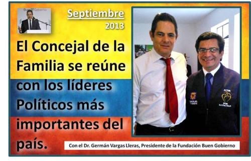 Germán Vargas Lleras, director de Buen Gobierno, el fortín reeleccionista de Santos, ya está haciendo alianzas con el pastor-concejal fundamentalista fanático Marco Fidel Ramírez:
