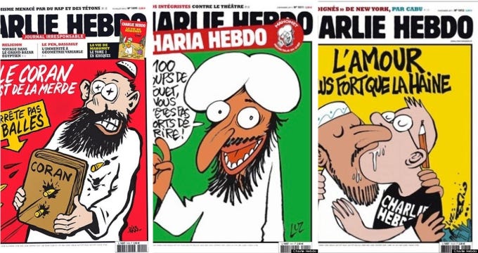El viernes, Samuel Paty, un profesor de colegio de las afueras de París fue decapitado por un musulmán que se estaba vengando porque el maestro había mostrado las caricaturas de Mahoma de Charlie Hebdo durante una clase que dedicó a la libertad de expresión — el asesino fue abatido por la Policía horas después. Unas semanas antes, otro musulmán había herido de gravedad a dos personas frente a la antigua sede de Charlie Hebdo. Ese ataque vino justo después de que la revista republicara sus caricaturas de Mahoma en honor al juicio que empezó en esa semana contra 14 personas por los ataques terroristas contra la revista en 2015.