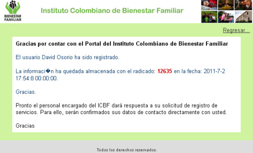 En vista del carácter pseudocientífico de la terapia y de que además en dicha terapia se promovían ideas de caracter religioso, no consideré que fuera suficiente con denunciar el hecho en un artículo, sino que acabo de llenar un formulario de contacto en la página del ICBF con la siguiente misiva: