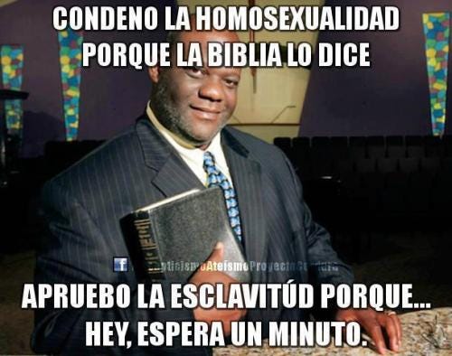 Condeno la homosexualidad porque la Biblia lo diceDavid Osoriomar 22, 2013CompartirApruebo la esclavitud porque... eyy, espera un minuto.(vía Facebook)AnteriorSiguiente