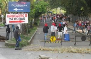 Los encapuchados, quienes eran acompañados por algunos estudiantes, avanzaron hacia la avenida Ferrocarril y amenazaron a todo vehículo o persona que intentara transitar por dicho sector.