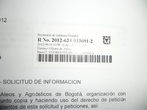 Derecho de petición de Ateos Bogotá por Bogotá Gospel