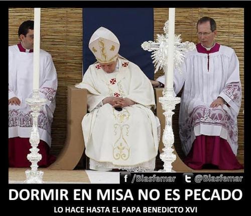 Dormir en misa no es pecadoDavid Osorioago 28, 2012CompartirLo hace hasta el Papa Benedicto XVI.(vía Blasfemar)AnteriorSiguiente
