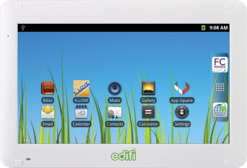 Nuestra tableta de pantalla táctil es mucho más que un e-reader! Está cargada con características favorables a la familia y aplicaciones gratuitas, como la búsqueda y navegación web segura por Wi-Fi, 27 traducciones de la Biblia y radio cristiana por Internet. Además, revisa el correo electrónico, redes sociales, muestra fotos y descarga libros electrónicos con nuestra aplicación Family Christian Reader!