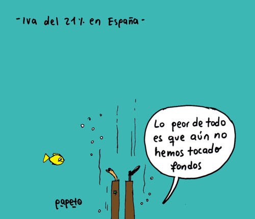 En España, Rajoy ya empieza a causar desastres, por ejemplo, con la hipócrita subida del IVA de su terrorífico plan de austeridad. Ha sido una salvaje subida del 18% al 21%.