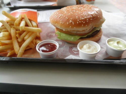 Este es mi recuento del suceso. Primero, llegué a la 1 p.m. a Plaza 39, en donde había quedado con Fengar para vernos, almorzar y después caer juntos a la reunión. Como no podía ser de otra forma, nuestro almuerzo fue extremadamente blasfemo y hereje, carne roja, satisfaciendo a plenitud el hambre: