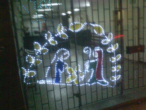 Y fue entonces cuando pasamos por enfrente de la Notaría Primera de Zipaquirá, que tenía en todo el ventanal un pesebre de luces:
