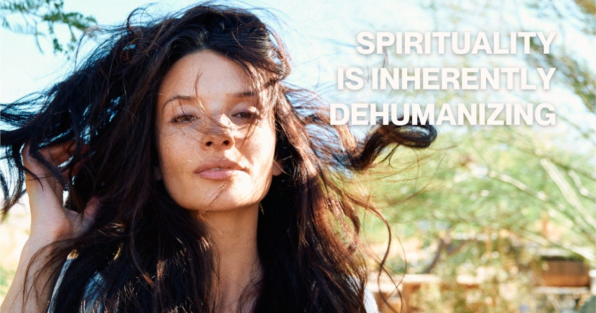 La espiritualidad es inherentemente deshumanizadora. Nos ve como espíritus y no como los animales que somos, luchando contra los impulsos de nuestra biología con vergüenza y condena.