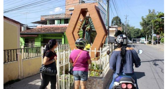En Colombia no es extraño encontrar iconografía católica invadiendo y afeando el espacio público, algo con lo que esa superstición cosecha las ventajas de la teocracia que imperó hasta bien entrado el siglo 20.