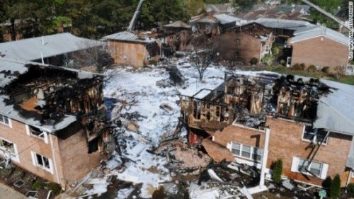 Así quedó este edificio de apartamentos en Virginia después de que lo impactara un jet de la Marina de EEUU.
