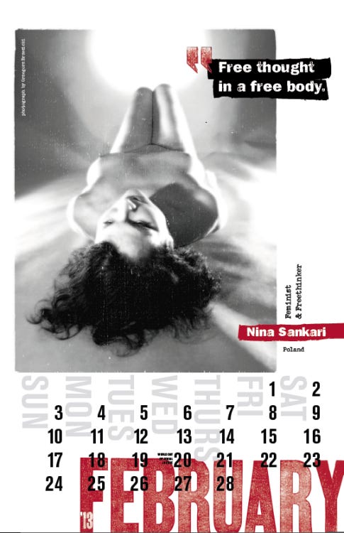 La imagen de este mes del Calendario de Fotos de Revolucionarias Desnudas es la de la feminista y librepensadora polaca Nina Sankari: