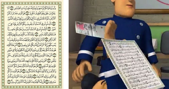 La religión de las necesidades especiales lo ha vuelto a hacer — consiguió censurar el programa infantil británico Fireman Sam, sólo porque mostraba la imagen de una página del Corán: