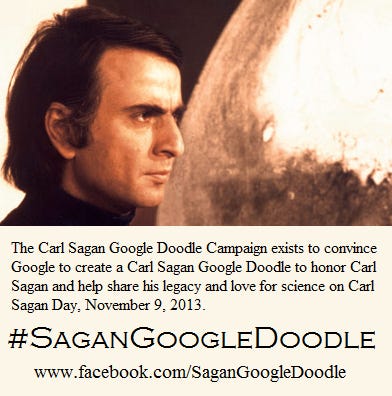 Pues bien, ahora hay una petición en Change para que el nueve de noviembre, el día de Carl Sagan, Google haga un Google Doodle de ese gran divulgador: