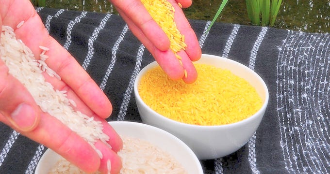 Voy a destacar tres de sus 'argumentos' —llamémosles así— contra el arroz dorado, y los responderé brevemente: