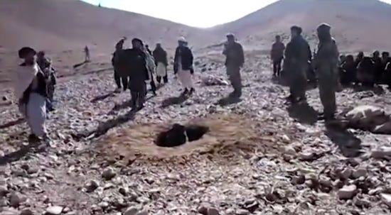 Un video de la lapidación muestra a la mujer, nombrada como Rokhsahana y con una edad comprendida entre 19 y 21 años, en un agujero en el suelo mientras los hombres le lanzan piedras casi casualmente con golpes repugnantes.