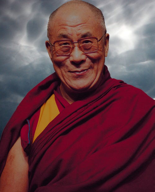 La segunda: si te has librado de los tentáculos de la superstición en todas sus formas, no eres lo suficientemente digno como para que el Dalái Lama te pida consejo. Sólo acepta consejos de los emocionalmente averiados e intelectualmente amputados. ¡Vaya líder!