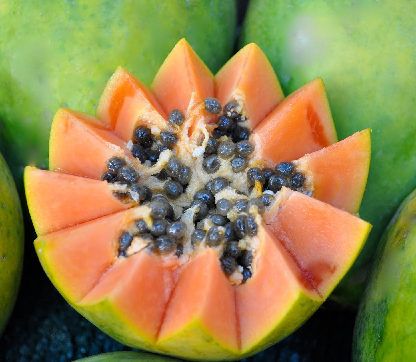 La papaya arcoíris es una variedad híbrida F-1 de papaya producida por el cruce de la variedad de pulpa amarilla estándar de Hawai de exportación, Kapoho Solo con la SunUp rojo-carne, la primera papaya genéticamente modificada con resistencia al virus de de la mancha anular. Investigadores de la Universidad de Cornell y la Universidad de Hawai habían realizado investigaciones desde 1984 para desarrollar esta variedad arcoíris, que incluye un gen que hizo a las plantas de papaya resistentes al virus de la mancha anular - similar a cómo una vacuna hace a la gente inmune a la enfermedad.