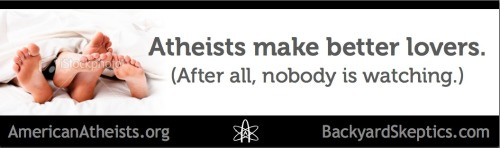 Que traduce: Los ateos son mejores en la cama. (Después de todo, no hay nadie mirando.)