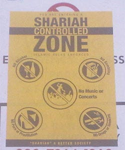 Ellos dicen: "Usted está entrando en una zona controlada por la Sharía. Las normas islámicas aplicadas".