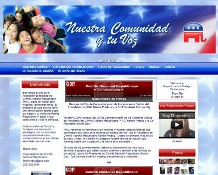 El nuevo sitio web del Comité Nacional Republicano enfocado en llegarle a los votantes latinos usa una fotografía de niños asiáticos como su imagen de cabecera.