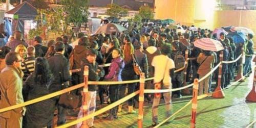 La fila parece la de un concierto del grupo Metallica, pero en realidad es la cola para entrar a una reunión más de 'El lugar de su presencia', la iglesia cristiana que les roba la tranquilidad a los vecinos de este tradicional barrio del norte de Bogotá.