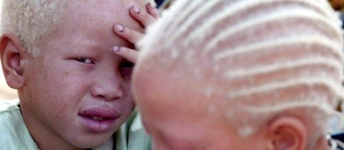 En Africa, muchos albinos son asesinados y descuartizados pues se cree que los miembros sirven para hacer amuletos que traen buena suerte y que llegan a venderse por miles de dólares. De acuerdo a la BBC numerosos ataque a personas albinas se han reportado en los últimos años.