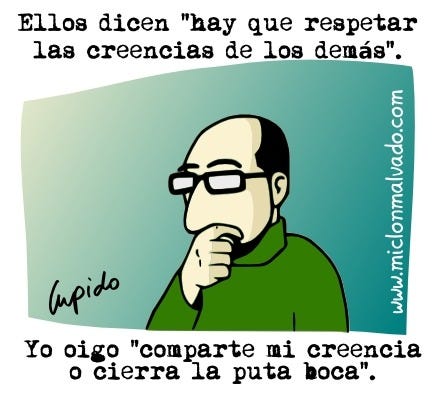 Por si están buscando más argumentos, siempre pueden leer por qué no respeto las creencias ajenas.