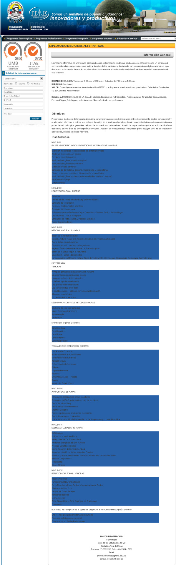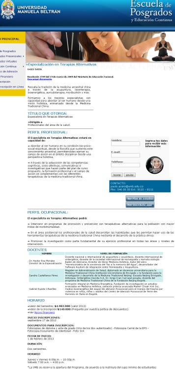 Así que hoy paso la solicitud postulando a la Universidad Manuela Beltrán para ocupar un puesto en dicha lista dado que se les ha ocurrido promocionar diplomados en medicinas alternativas y especializaciones en terapias alternativas.