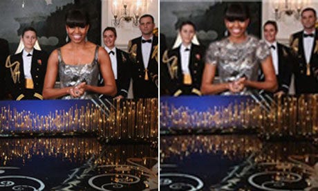 La agencia de noticias semioficial iraní Fars editó fotos de Michelle Obama en los Oscar con Photoshop para ajustarlas a las restricciones iraníes de las imágenes del cuerpo femenino en los medios de comunicación.