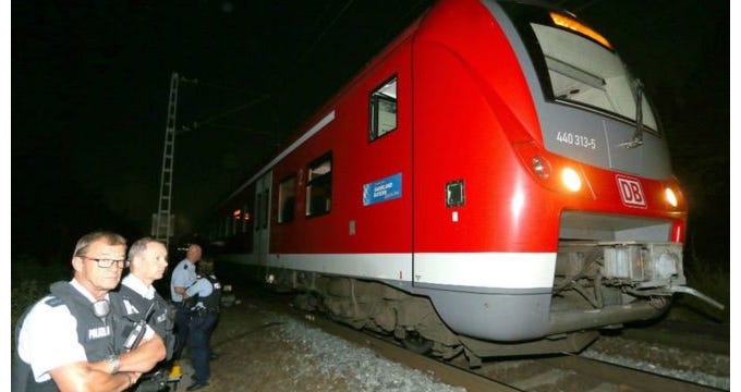 El lunes por la noche, en la estación de tren de Würzburg (Alemania), un inmigrante afgano atacó con un hacha a una familia de Hong Kong y a una señora que paseaba a su perro —quien se encuentra en estado crítico—. Otras 14 personas fueron tratadas por el shock. El tipo fue abatido por la policía.