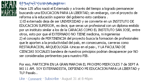Por eso, PARTICIPA EN LA GRAN MARCHA EL PROXIMO MIERCOLES 7 de SEPT A lAS 11 AM. SOY EXTERNADISTA, DEFIENDO MI EDUCACION PARA LA LIBERTAD y TU? Pasalo..