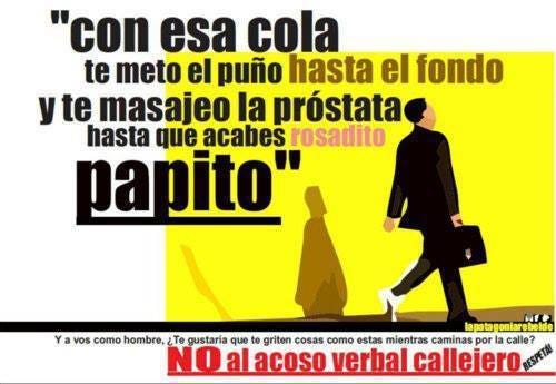 La imagen va acompañada de la pregunta más idiota jamás hecha: "Y a ti como hombre, ¿te gustaría que te griten cosas cómo estas mientras caminas por la calle?".