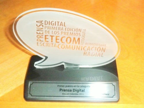 Primer puesto en la categoría Prensa Digital del premio ETECOM Colombia 2011 de Telefónica.