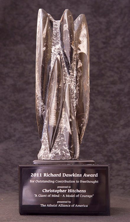Como ya lo mencioné, Christopher Hitchens fue premiado con el Richard Dawkins Award en la Texas Freethought Convention de este año, que tuvo lugar hace unos días.