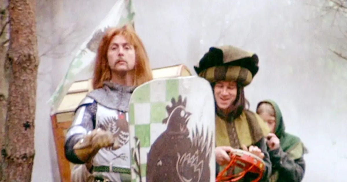 Así que cuando los defensores del capitalismo invocan el mito del riesgo, a mí siempre me viene a la mente el personaje de Sir Robin de la genial Monty Python y el Santo Grial (alerta: spoilers). Sir Robin, uno de los caballeros de la Mesa Redonda, era conocido como Sir Robin el Valiente, y su nombre siempre iba asociado a su gallardía. El caso es que Sir Robin sale de Camelot acompañado por su juglar favorito (cuya balada a la valentía de Sir Robin es simplemente exquisita), y al encontrarse con el temible Caballero de Tres Cabezas en el oscuro bosque de Ewing, huye a toda prisa, hecho que es incluido en la balada del juglar, quien apunta que Sir Robin “huyó valientemente”, y “galantemente se acobardó”, entre las protestas del ‘corajudo’ caballero.