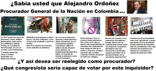 ... se ha opuesto a que se conozcan públicamente los tres casos en los qeu el aborto está despenalizado en Colombia: por malformación fetal, reisgo de la madre, y violación. Aseguró entonces que se había ordenado 'Cátedra de aborto' en todos los colegios.