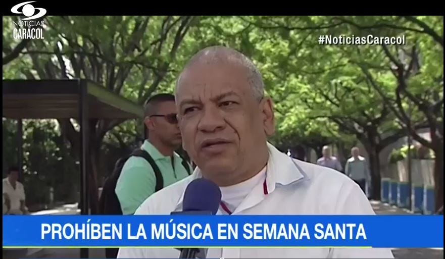 El documento que fue conocido por Noticias Caracol, prohibía “la emisión de música (…) desde el día martes 11 de abril a las 5:00 p.m. hasta el sábado 15 de abril a las 10:00 p.m. o hasta tanto se cante Gloria en las iglesias”.