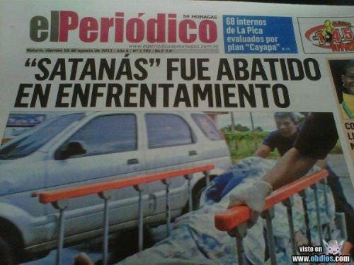 Satanás fue abatido en enfrentamientoDavid Osoriodic 04, 2012Compartir¡Pues qué alivio!(vía Facebook)AnteriorSiguiente